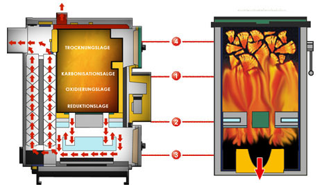 Die vier Etappen der Holzvergasung
